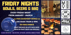 Friday Nights are BACK at Flemington & Kensington Bowling Club! Each week starting Jan 31st until March 27th we’ll be firing up the BBQ, opening up the greens with FREE barefoot bowls, blasting out the LIVE MUSIC and serving up the craft beers.