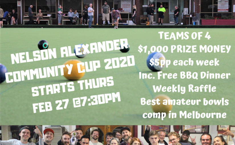 Fancy yourself at barefoot bowls? Grab a few mates for Melbourne’s favourite amateur bowls comp starting Thursday Feb 27. The Nelson Alexander Community Cup has been running for a few years and consists of teams of 4 players (players can rotate each week). Each week teams play against each other to finish as high on the ladder as possible to position themselves for the finals which will be played on Thursday April 2nd. The comp goes for 5 weeks with 1 week of finals.